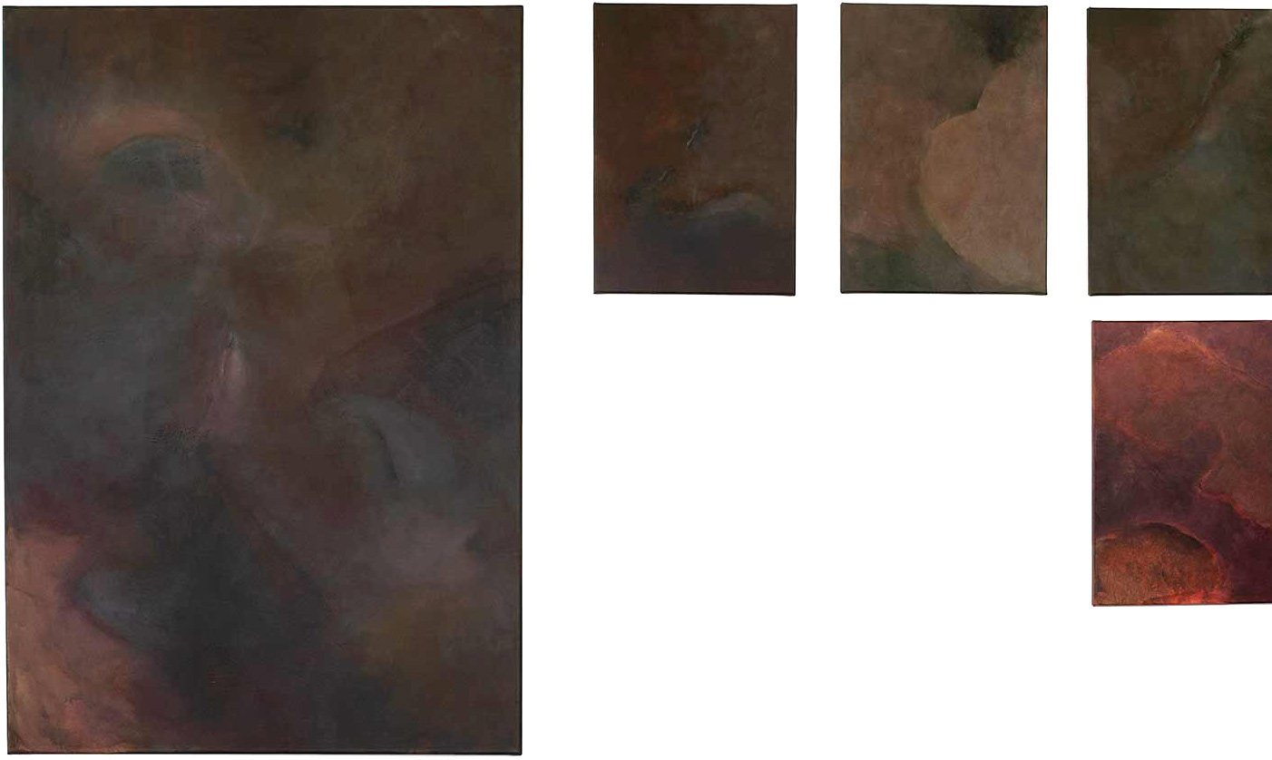 Acryl auf Leinwand, links: 130 x 90 cm, rechts: je 50 x 36 cm